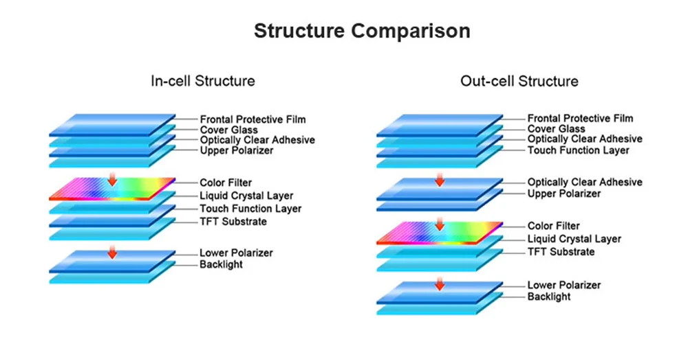 인셀 터치스크린과 기존 아웃셀 터치스크린 비교